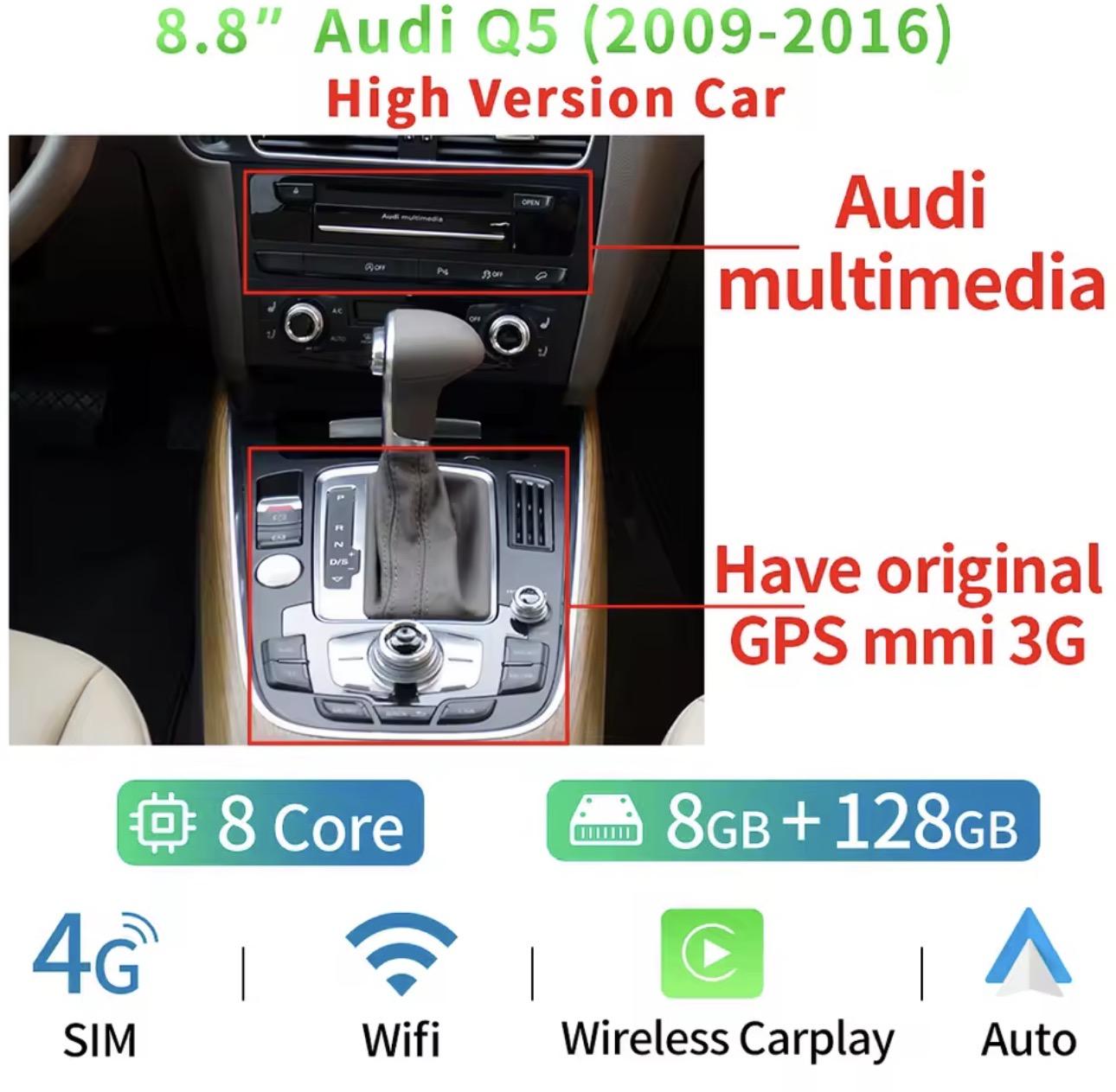 Audi Q5 2009 – 2016 – 8,8″ Android skjerm med Apple Carplay og Android Auto. For biler med MMI!