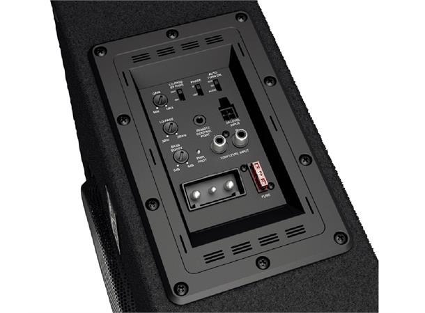 Høynivå inngangen med flerpolig kontakt letter integrasjonen med OEM-lydsystemer, mens lavnivåinngangen på RCA er dedikert til tilkoblingen med ettermarkedskilder. Subwooferens automatiske på / av-funksjon ART (automatisk) kan konfigureres for å styres av kildeens signal, ved spenningsvariasjon på høynivåinngangen eller av lydsignalet på begge innganger. Fasekontroll (0 – 180 °) kompletterer enheten.