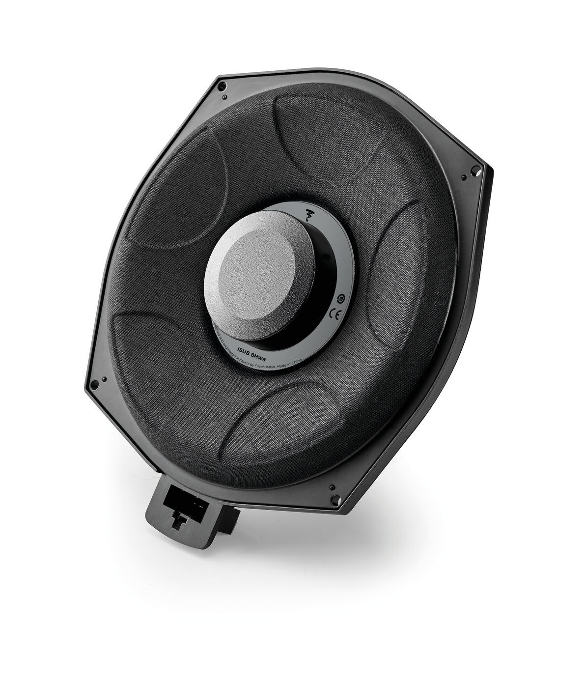 ISUB BMW 8 er en subwoofer som leverer kraftig bass takket være sin neodymiummotor, en høytytende Focal-teknologi. Med en 8 ohm impedans er denne subwooferen kompatibel med kjøretøyer utstyrt med originalt Harman Kardon. Med ISUB BMW 8 er lyden nøytral og installasjonen er rask takket være avstandsstykket integrert i chassiset som gjør det mulig å integrere perfekt på originalplassering
