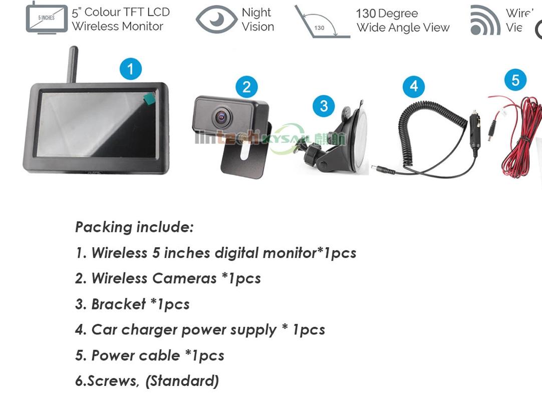 Pakke med 1 stk trådløst kamera og 1 stk 5″ monitor.